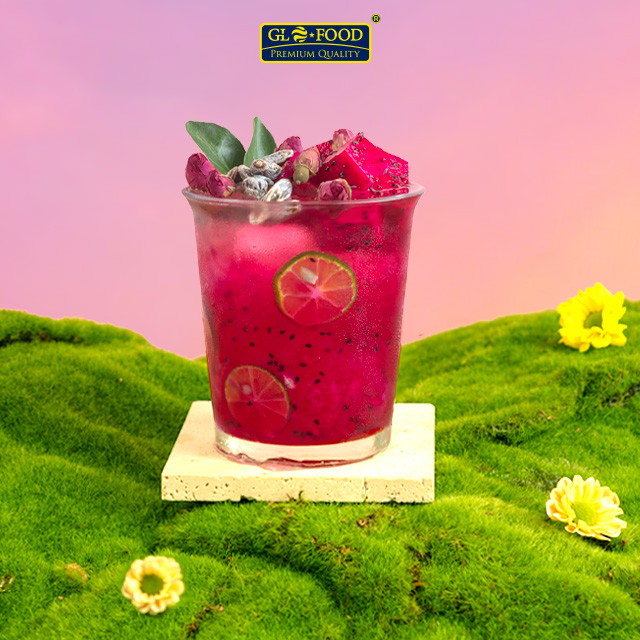 Hãy cùng GLOFOOD khám phá bộ sưu tập 4 công thức từ thanh long đỏ độc đáo dưới đây. Với sắc hồng tím tự nhiên đầy quyến rũ của thanh long đỏ, sẽ làm cho ly nước của bạn là món quà dành cho những người phụ nữ sinh đẹp tới quán của bạn.